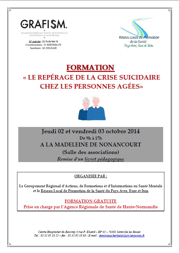 Formation sur le repérage de la crise suicidaire chez la personne âgée à La Madeleine de Nonancourt , les 2 et 3 octobre 2014