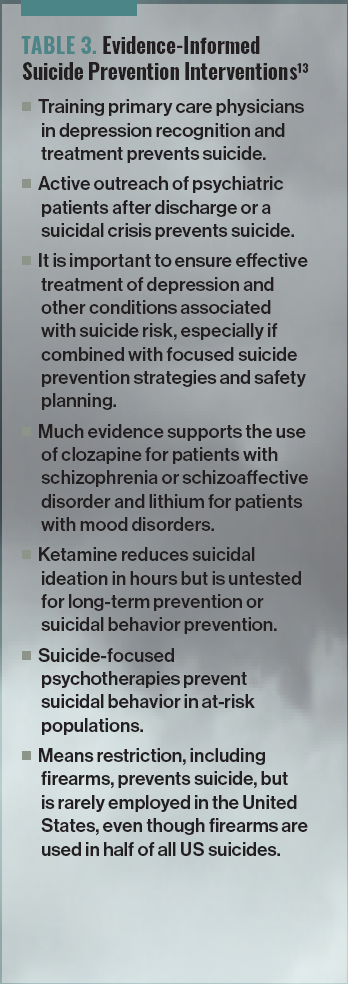 13. Mann JJ, Michel CA, Auerbach RP. Improving suicide prevention through evidence-based strategies: a systematic review. Am J Psychiatry. 2021;178(7):611-624.