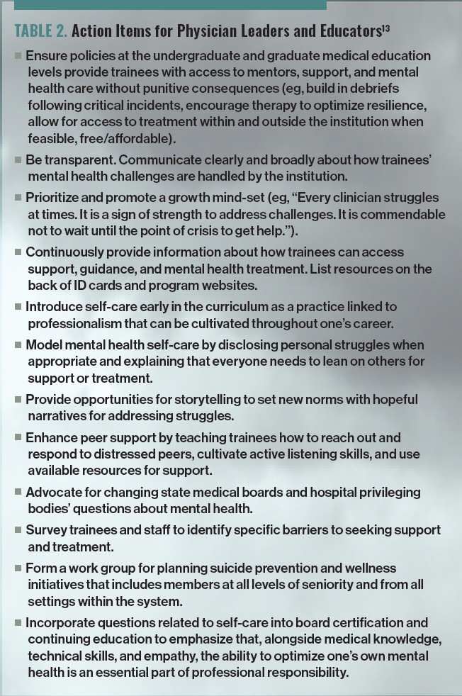 19. Moutier C. Physician mental health: an evidence-based approach to change. J Med Regul. 2018;104(2):7-13.